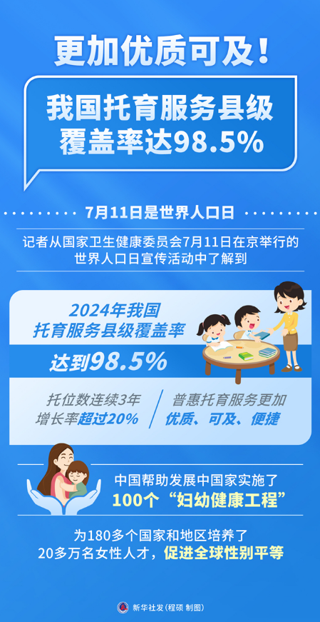 我国托育服务县级覆盖率达到98.5%,托位数连续3年增长率超过20%,普惠托育服务更加优质、可及、便捷。